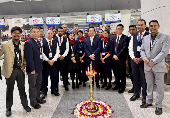 郭策公使在致辞中代表中国驻印度大使馆,祝贺中国东方航空公司成功恢复上海至德里航线。郭指出,这既是五年来中国航空公司开通的首条中印直航航线,也是两国领导人习近平主席和莫迪总理在喀山和天津成功会晤的成果之一。中印直航恢复有利于两国人民出行便利,也将促进中印两国之间的商业往来、文化交流。